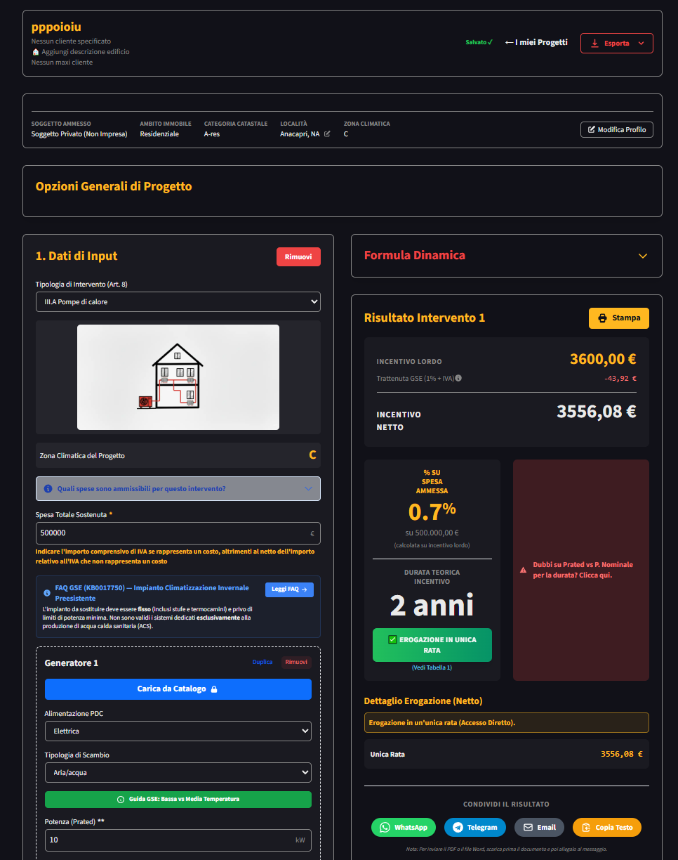Calcola l'incentivo ai sensi del Decreto 7 agosto 2025 in pochi secondi. Lo strumento definitivo per professionisti e clienti finali.