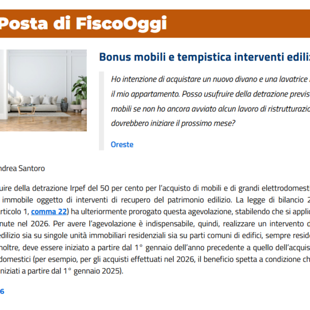 FiscoOggi - Bonus mobili e tempistica interventi edilizi