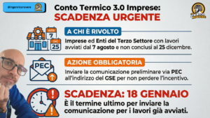 Conto Termico 3.0 – IMPRESE – poco tempo per la richiesta preliminare per lavori già iniziati