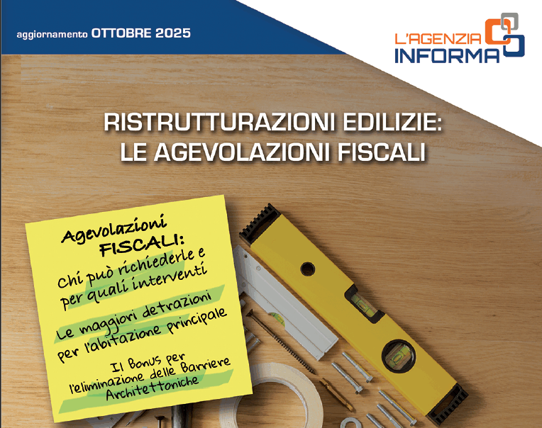Ottobre 2025 – Ristrutturazioni edilizie Aggiornamento guida Agenzia delle Entrate Clicca qui per scaricare la GUIDA Guida pratica alle agevolazioni fiscali per interventi di rigenerazione del patrimonio immobiliare Gli interventi di recupero del patrimonio edilizio beneficiano di importanti agevolazionifiscali, sia quando […]