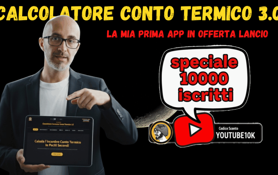 Conto Termico 3.0: Ecco l’App che Ti Aiuta Davvero (Senza Impazzire) https://youtu.be/Owco6tkci8Q Ciao e ben tornati…. ho partorito! 😎 Vai subito sull’app per approfittarne: https://app-conto-termico.web.app/ Se lavori nel settore dell’efficienza energetica, sai benissimo che fare stime sul Conto Termico […]