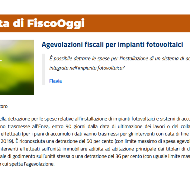 FiscoOggi - Agevolazioni fiscali per impianti fotovoltaici