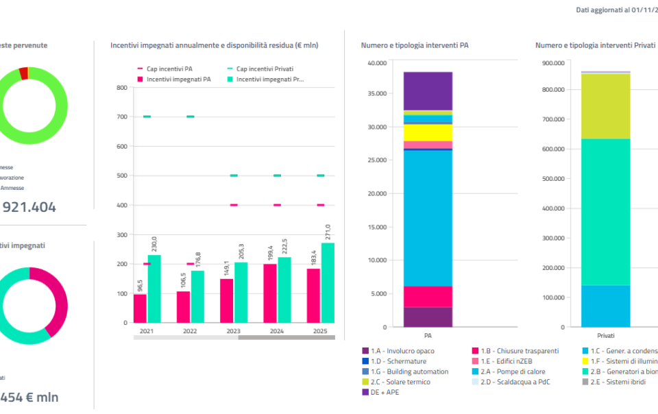 Il GSE ha aggiornato il contatore del Conto Termico CONTO TERMICO, I NUMERI DEL CONTATORE AL 1° NOVEMBRE 2025 Il GSE ha aggiornato il contatore del Conto Termico con l’obiettivo di monitorare l’andamento degli incentivi impegnati, previsti dai D.M. 28/12/2012 e D.M. […]